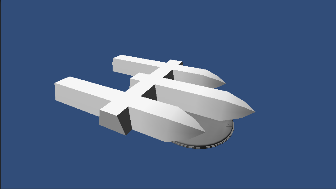 The first ship I built in my new game. I'm not much of an artist so the ship parts are what I managed in a 1/2 hour each and I only made 5 different parts, enough to build a simple ship.
